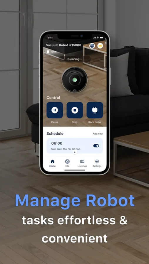 Make your Vacuum Cleaner become the best house cleaning vacuum you ever had with this app. We offer you the most frequently used features of the Robot, making sure you can control it with some taps. Enjoying a cup of coffee, watching your favorite shows and managing your Robot vacuum work at the same time.