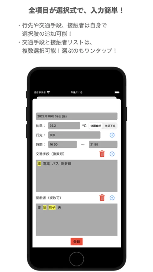 いつどこで、誰と過ごしたのか・・・?提出時に忘れがちなポイントを記録できます!