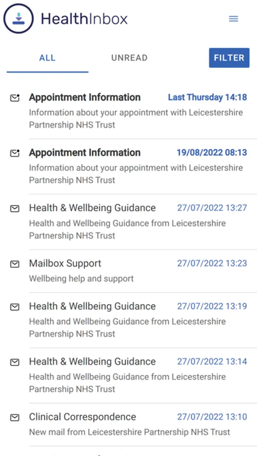 HealthInbox allows you to go paper-free and receive letters from Leicestershire Partnership NHS Trust on your mobile device. It’s a convenient and secure way of viewing all of your letters in one place, whenever you need to.