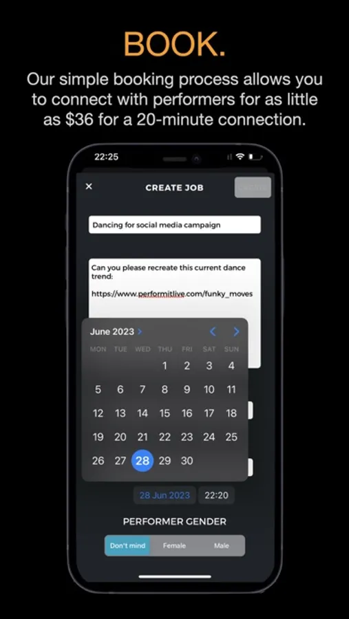 Bid farewell to time-consuming logistics. Performit Live streamlines the booking process, allowing you to effortlessly connect and collaborate with performers. Our app provides a hassle-free experience that saves you time and energy. You can book the performer in advance; schedule the specific date and time you require. Plus, you can choose the length of time you want to book ranging from 20 min through to 1, 2 or 3 hr connections.
