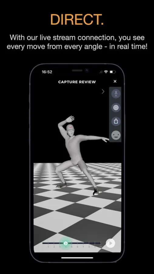 - See your performer in real-time and in 3D on your mobile device.
