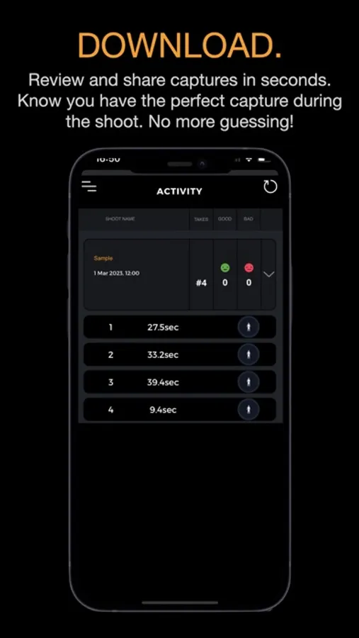 - Capture the motion and review within seconds, verify it is exactly what you wanted. You can even tag what you consider good or bad captures.
