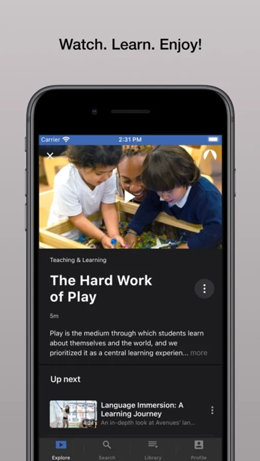 Explore a vast catalogue of educational documentaries and lecture series from Avenues The World School. As part of our mission to "share our discoveries, large and small, for the cause of education," Avenues has been producing films on our educational philosophy for more than 10 years. The Avenues The World School streaming app shares all our best content in one place. Watch. Learn. Enjoy!