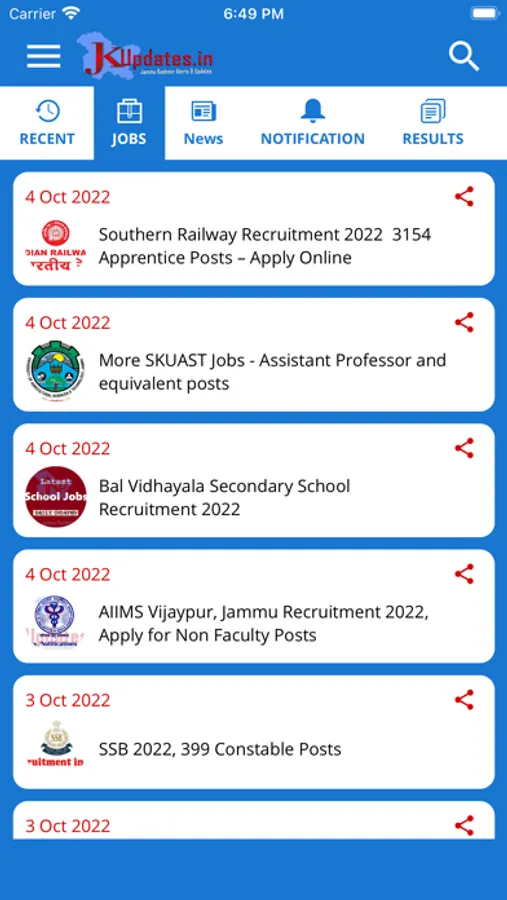 JKUpdate Update All Latest Jobs, Results, Notifications from Jammu Kashmir, Ladakh UT and India.