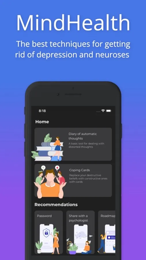 It provides the opportunity to practice cognitive behavioral therapy anytime, anywhere. The main feature of our app is an automatic thought diary. It allows users to write down their negative and positive thoughts, be aware of them and look for ways to process them.