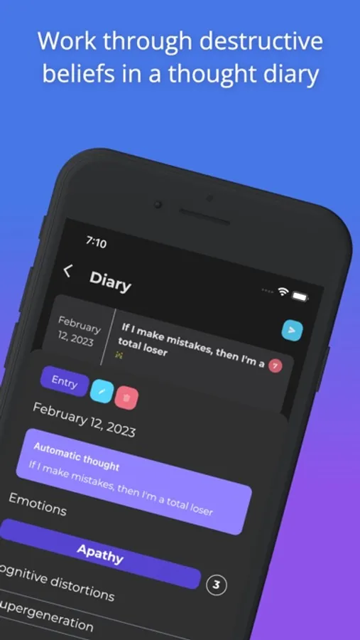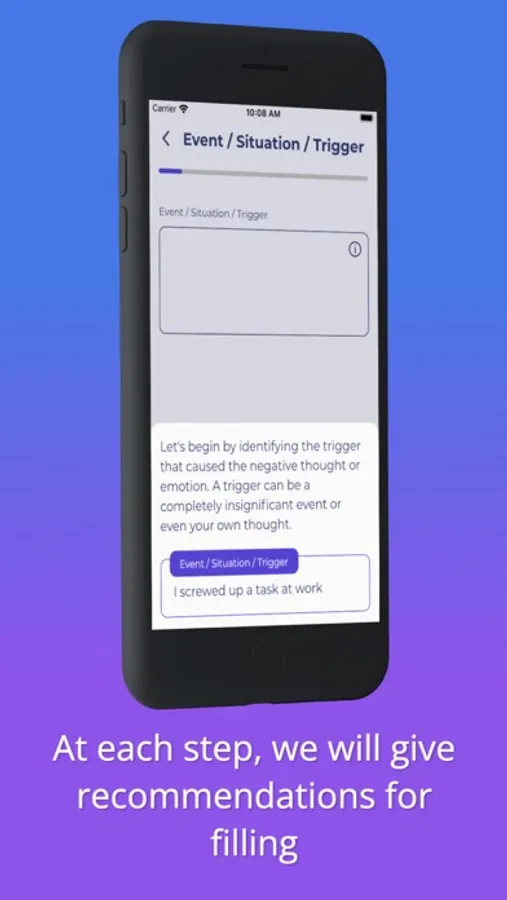 Automatic Thought Diary helps users understand how their thoughts affect their mood, behavior and emotional state. Working with the automatic thought diary is one of the main tools of cognitive behavioral therapy, which helps users to better understand their thoughts and emotions, as well as to get rid of psychological problems.