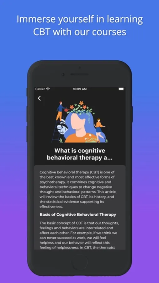 Our Cognitive Behavioral Therapy (CBT) app is designed for those seeking to improve their mental health and increase their emotional resilience.