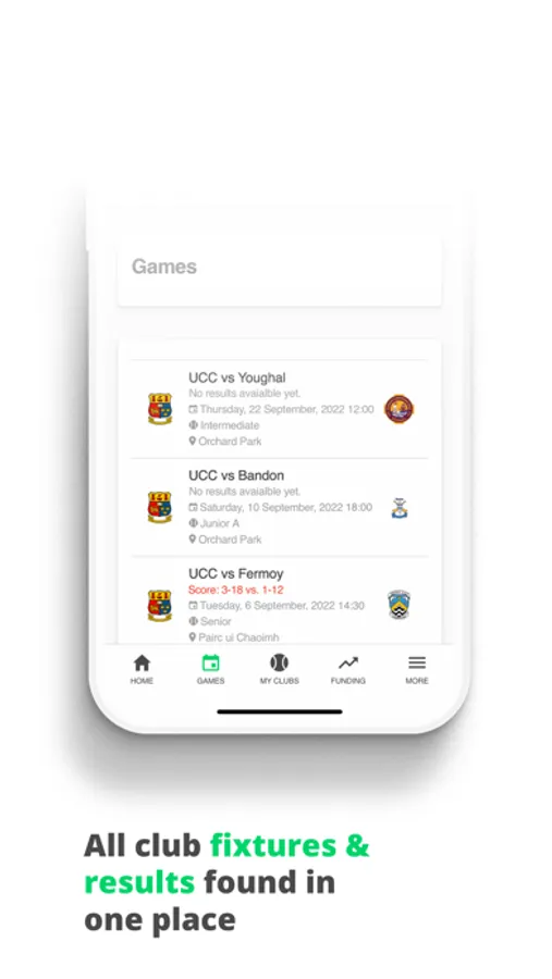 iClubs allows you to follow your local GAA club and keep up to date with all of their club news, updates, fixtures, and results and see real-time live scores.