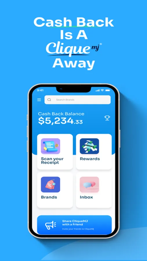 CliqueMJ turns your receipts into cash! Everytime you scan a receipt and prove you've purchased from one of the brands on our app, we save you money. With our cash-back app, you'll earn cash everytime you purchase from a brand that is listed on CliqueMJ. How CliqueMJ Works: 1) Make a purchase from any retailer or delivery 2) Scan your receipts to earn cash-back 3) Redeem your cash and have it sent straight to your bank account