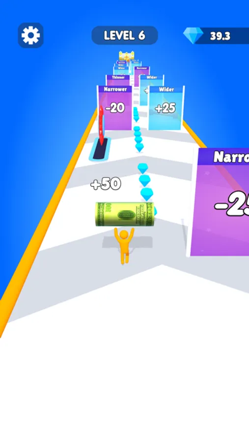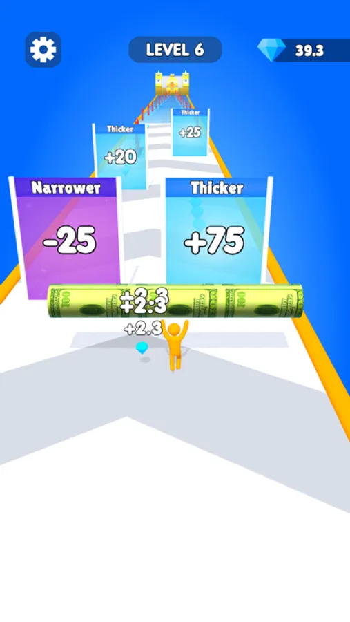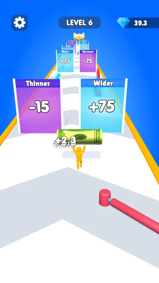 Choose correct gates and multiply your money. Increase your money roll width and height.