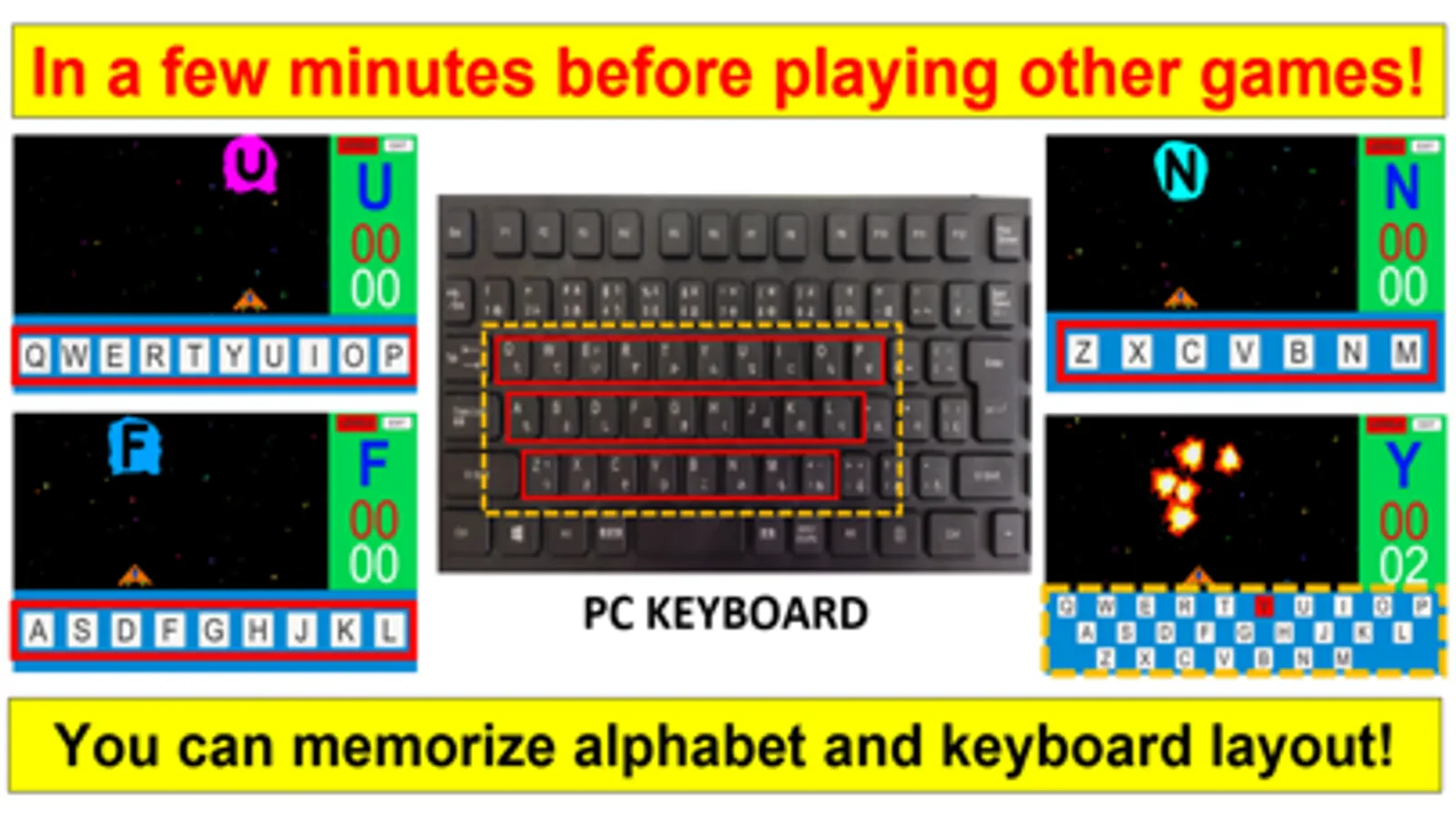 In a few minutes before watching TV or playing games, you can memorize alphabet and keyboard layout.
