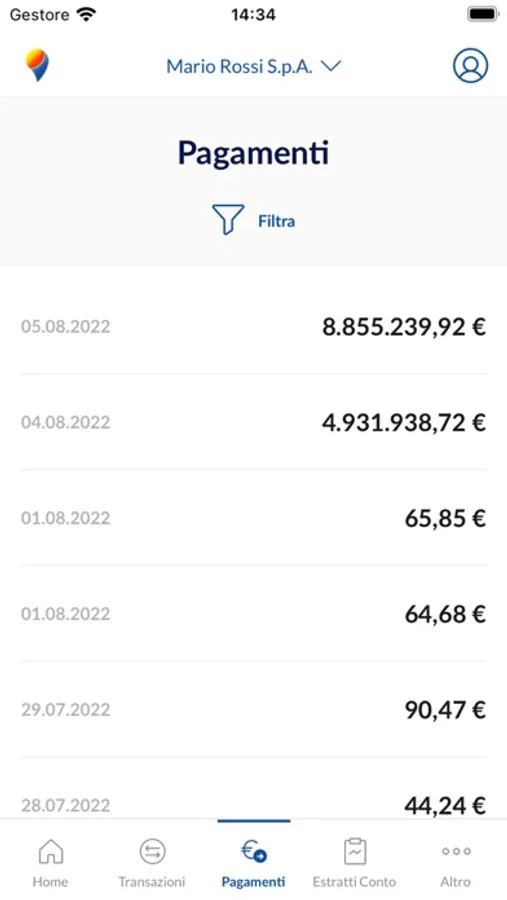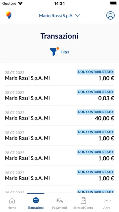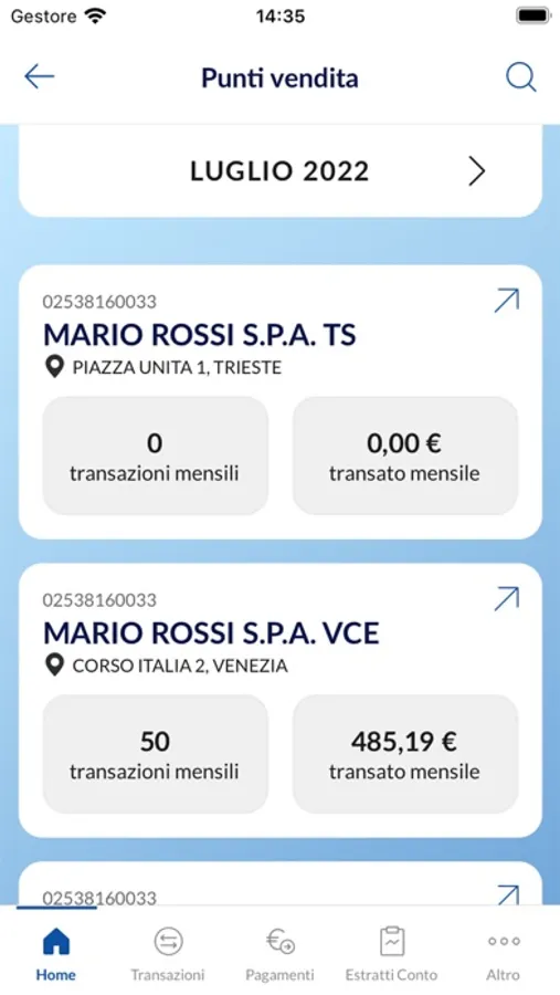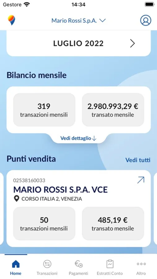Sulla tua dashboard avrai a disposizione tutte le entrate giornaliere effettuate con i POS LIS Pay, suddivise per azienda e per singolo punto vendita.