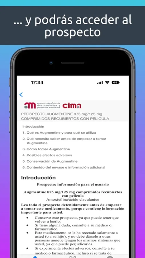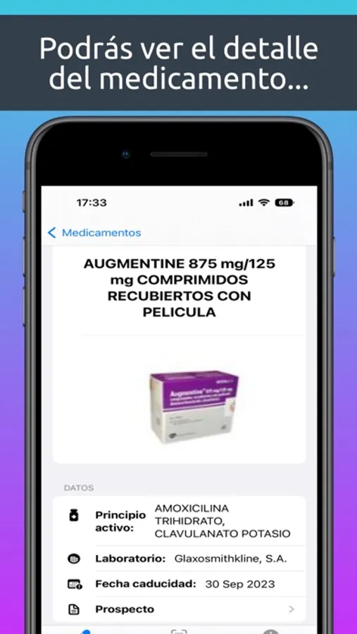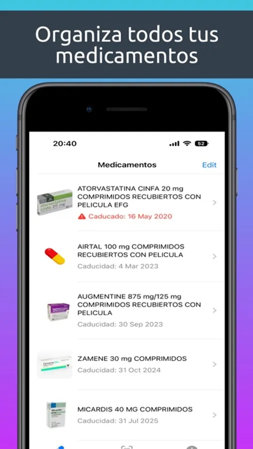 Utiliza la cámara de tu móvil para leer los códigos QR o de barras de tus medicamentos para tenerlos organizados en tu móvil con todos sus datos: prospecto, fecha de caducidad, foto del producto, etc. Ahora podrás saber si tienes un medicamento en casa y todos sus detalles, incluido el prospecto, sin necesidad de perder tiempo buscando en tu botiquín porque ahora lo tienes en tu móvil.