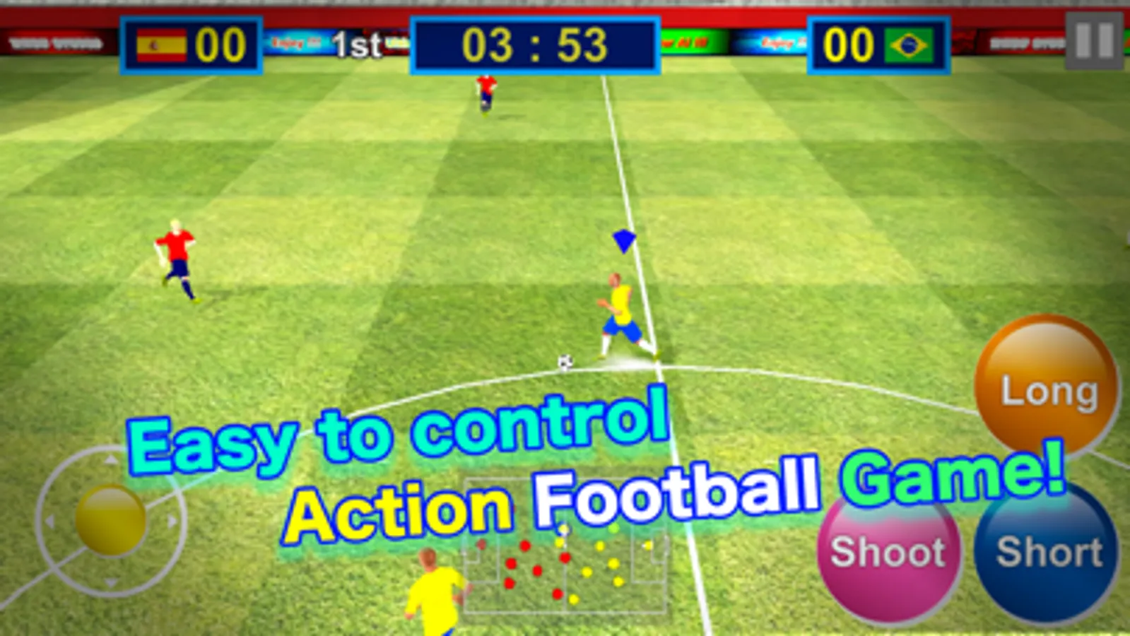 Operate your favorite team and win the tournament! You can get a shot dribbling pass just by operating the button on the screen, and you can score a goal.