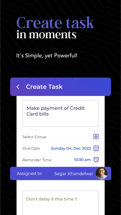 A revolutionary concept where you can create and send tasks just like sending a message to your "Contacts" with additional features of adding date and time with automated reminders.