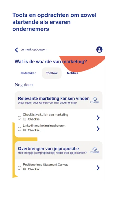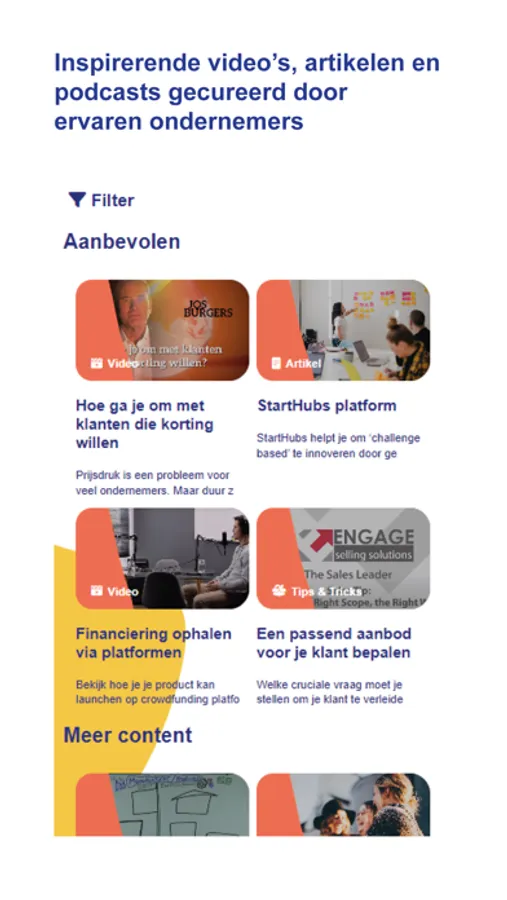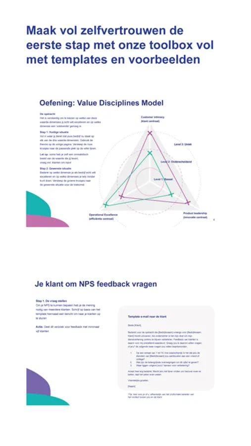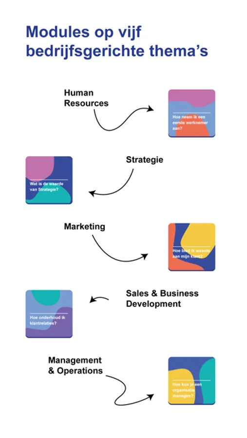 Professionaliseer jouw onderneming op gebied van strategie, sales, marketing, human resources en operations. De content die gecureerd is door andere ondernemers helpt je te bepalen waar kansen liggen voor jouw bedrijf. Daarnaast ga je met onze tools en templates direct aan de slag met bewezen methodes. Zo maak jij stappen die jouw onderneming écht verder brengen.