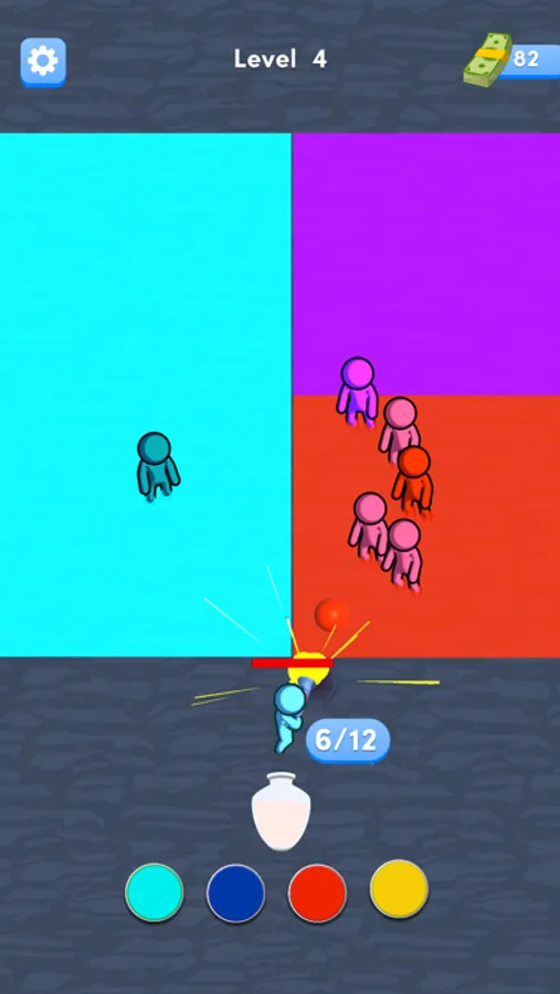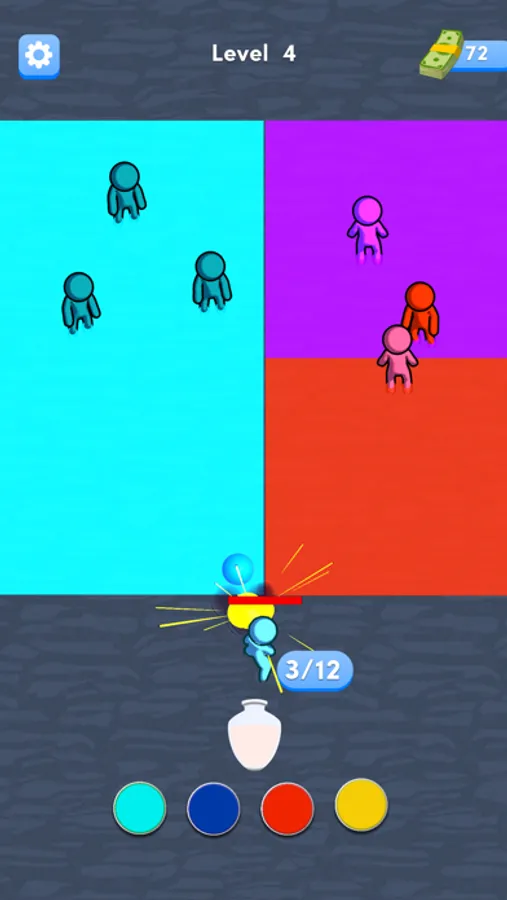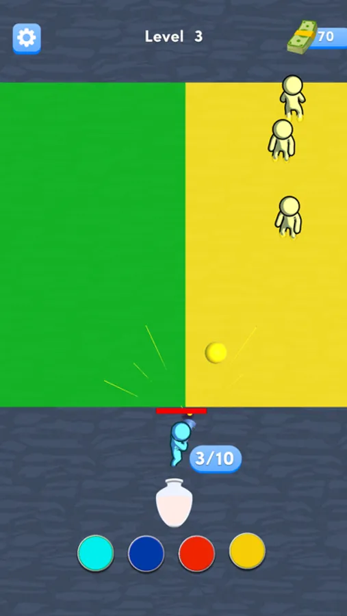 Choose the right color by dragging it, and shoot all enemies before they come and reach you.