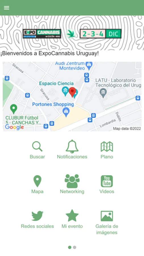 Aplicación de la 9° ExpoCannabis Uruguay que se llevará a cabo los días 2 al 4 de Diciembre de 2022 en Av. Dra. María Luisa Saldún de Rodriguez 2037, Montevideo, Uruguay.