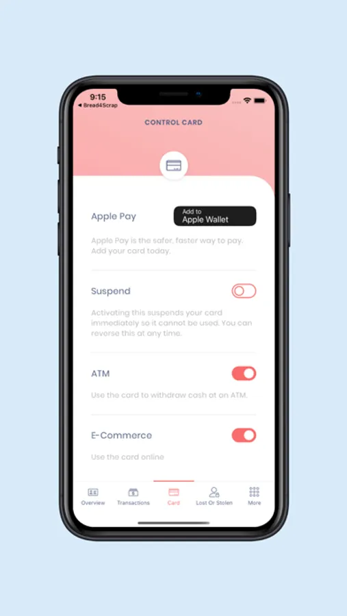 With the Bread app installed on your mobile device, you can manage your Bread4Scrap card on the go. See below the features the app has to offer: