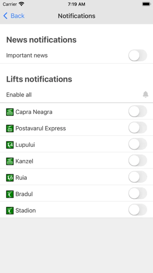 * The ability to choose for which lift lines you want to receive update notifications.
