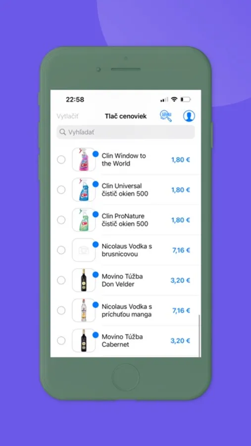 Aplikácia tlač cenoviek vám ihneď pripraví cenovky, ktoré treba vytlačiť. Pomocou prenosnej bezdrôtovej tlačiarne ich vytlačíte ihneď a priamo na mieste, kde sú potrebné.