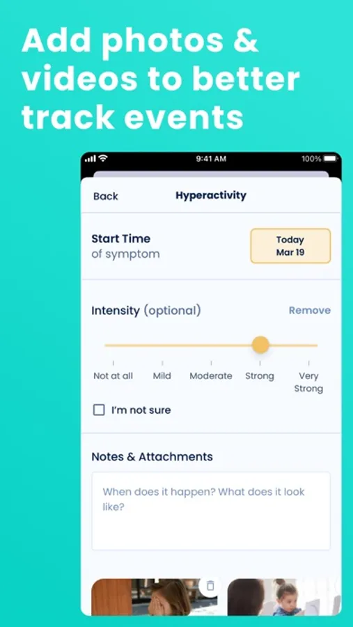 - Log any symptom, behavior, treatment, and program. No event is too small. You can search it all inside Sleuth.