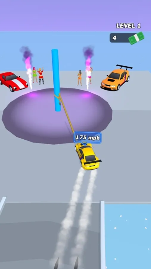 Try to match colors with road lines, throw the rope and enjoy the drift!