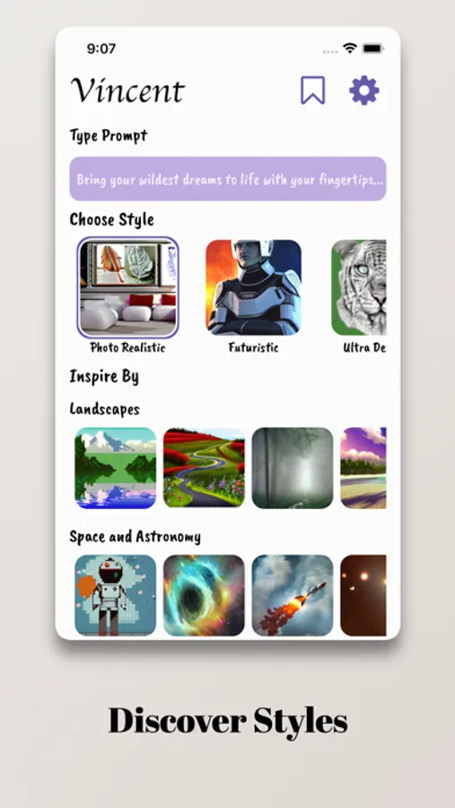 From the classic and iconic style of Vincent Van Gogh to the modern and edgy style of StarryAI and Dungeon, there are over 30+ styles to choose from. You can even experiment with Lisa, Graphic, and Design styles. And once you've crafted your masterpiece, share it on Pinterest or save it for your own private collection.