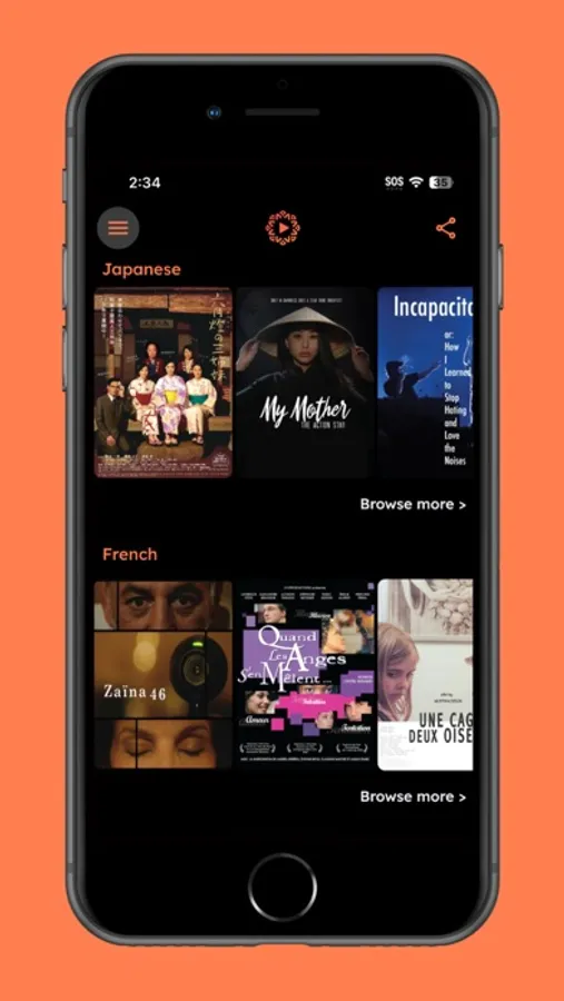 Browse movies and shows by genre and language or search using key words. You can also change app language to your preferred language.