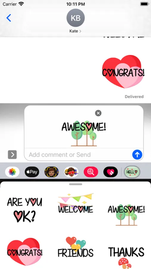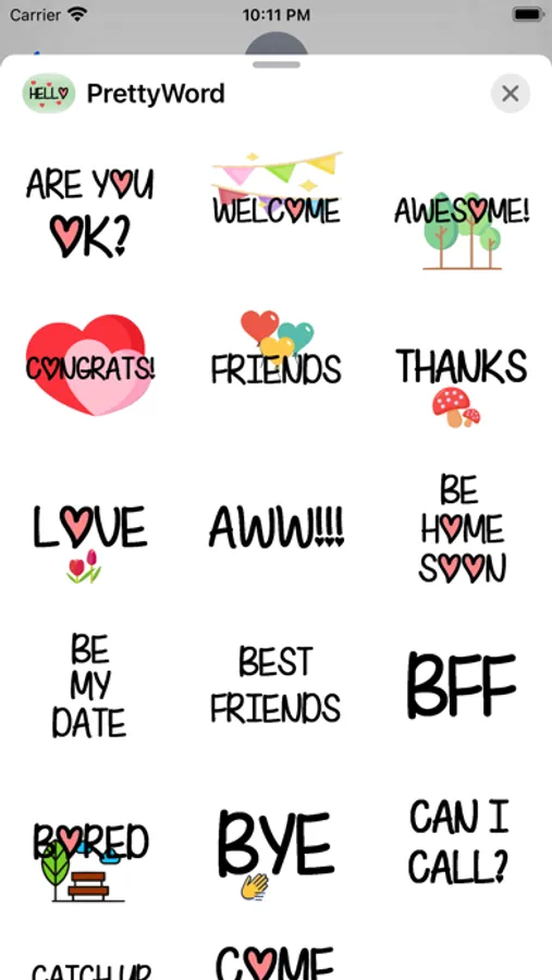 Fun and Cute with "Pretty Word stickers" pack. It is always ready to add more emotion to your text.