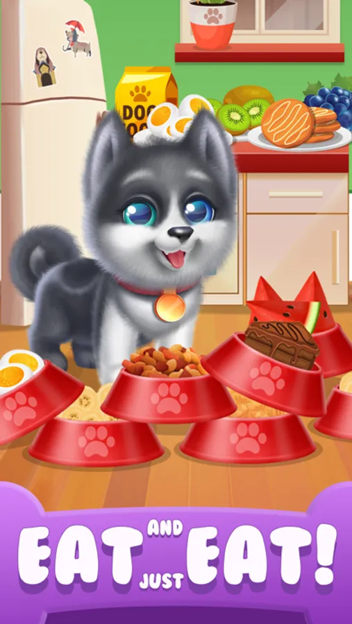 Welcome to the cute dog husky pet house! Adopt a virtual cute dog husky and watch your pet grow! If you are a pet lover, this cute dog husky would definitely melt your heart! cute dog husky repeats everything you say with a funny voice. Enjoy hours of fun and laughter with a cute dog husky.
