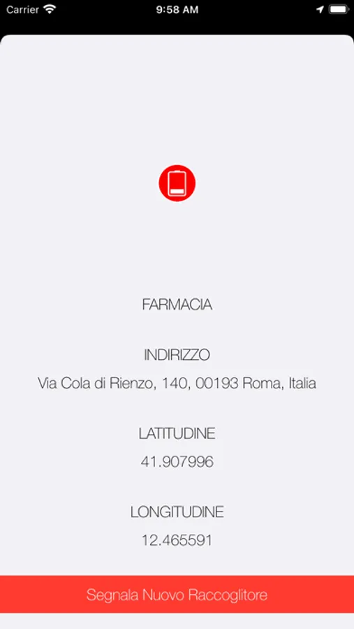 - Possibilità di segnalare un nuovo raccoglitore non presente sulla mappa