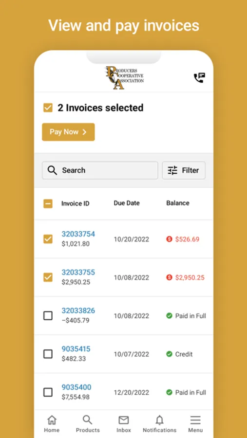 • Easily look up all of your Producers Coop account information. Find all of your previous purchases or view and pay your invoices in a few clicks.
