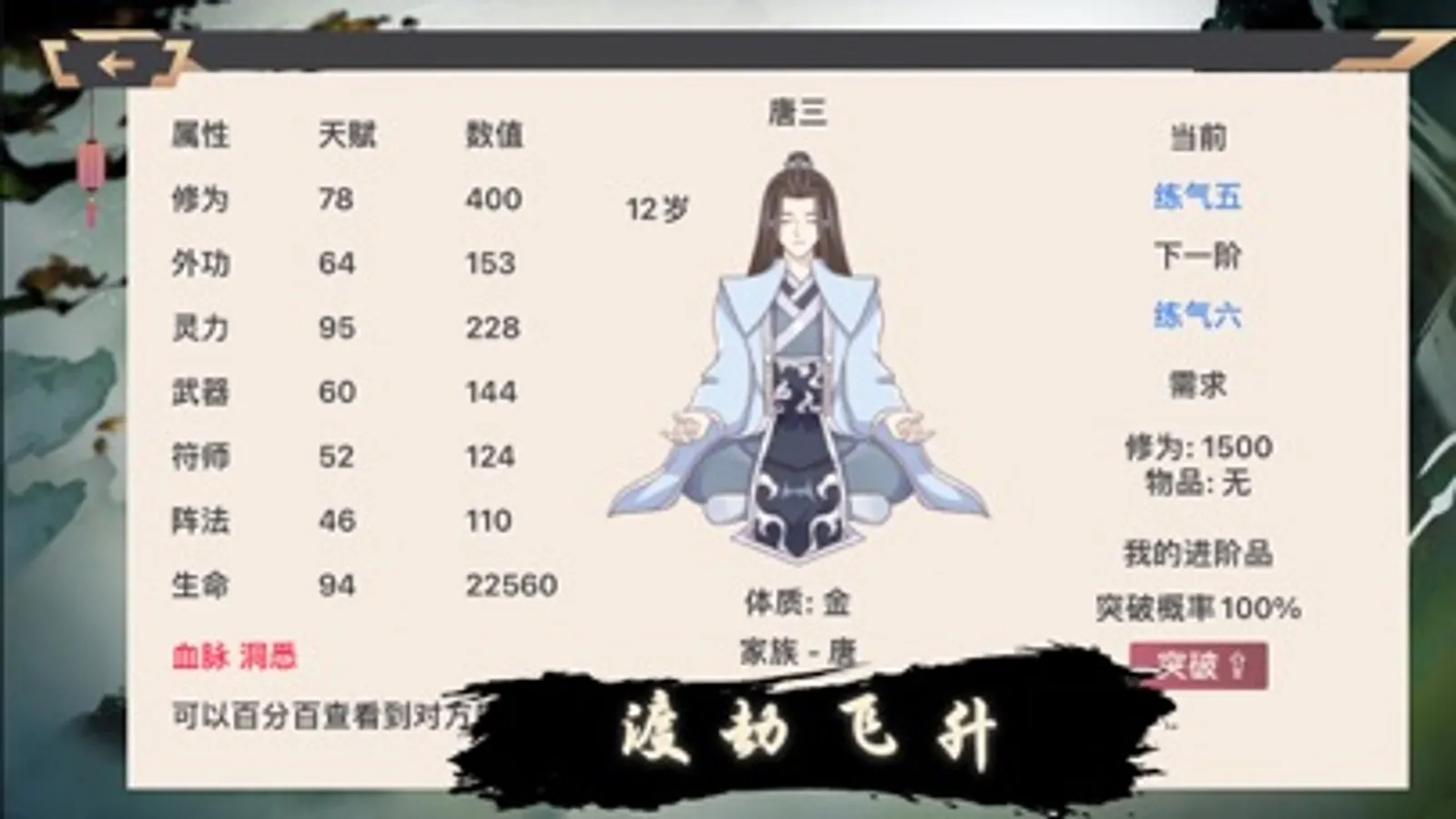 模拟了修真武侠世界,让你走一遍修仙之路。看看是否能逆天改命,渡劫成仙。