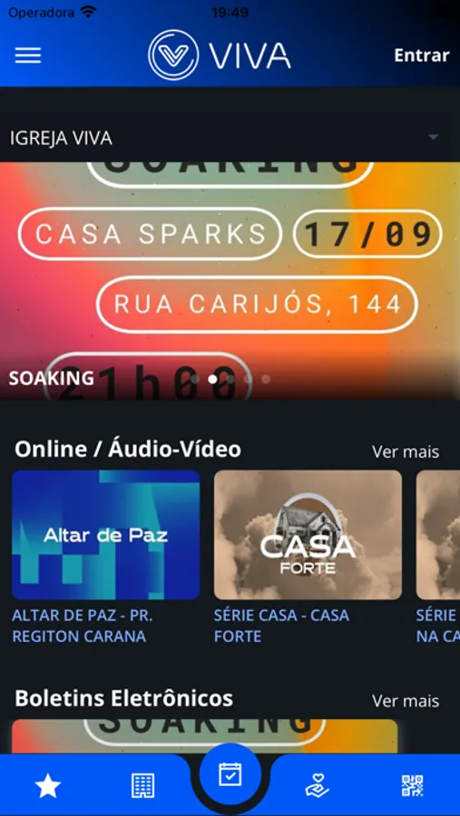 * Conteúdos (Áudio/Vídeo): Permite visualizar e ouvir os conteúdos da Igreja disponíveis no App;