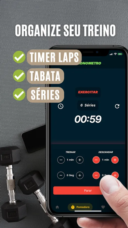 Este temporizador de fitness é para treinamento intervalado de alta intensidade (HIIT) o temporizador tabata foi projetado para maximizar os treinos.