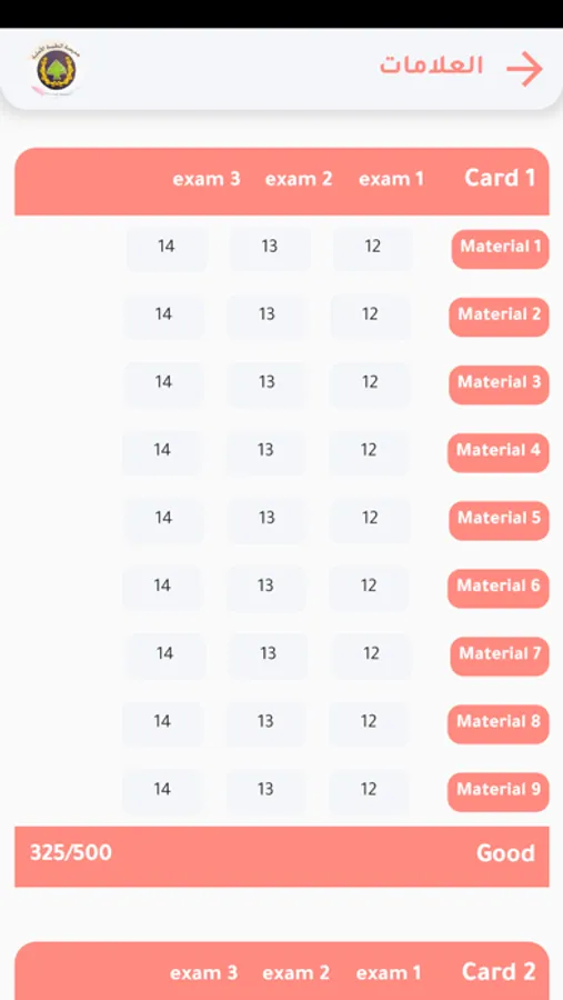- مشاهدة علامات امتحانات الطالب
