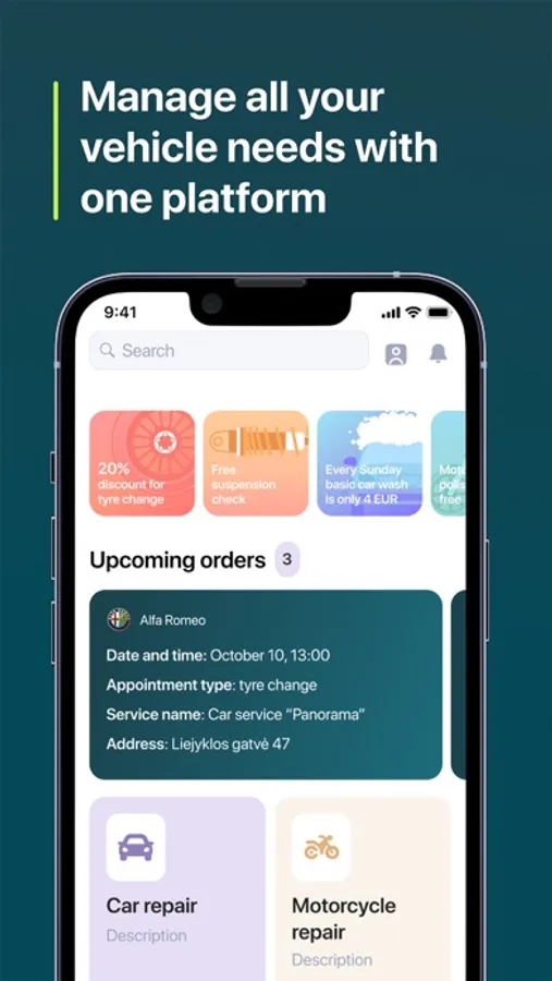 FairFix is a platform, which unites private users, business users, and vehicle service providers in one place. Book and manage all your vehicle needs quickly and without hassle. Whichever service you need - tire change, oil change, or even engine rebuild, FairFix will help you find it. With FairFix you won't need to call car workshops to schedule, reschedule, or cancel your appointment. Choose the best-suited workshop for you by reading reviews, choosing desired date, time, and location.