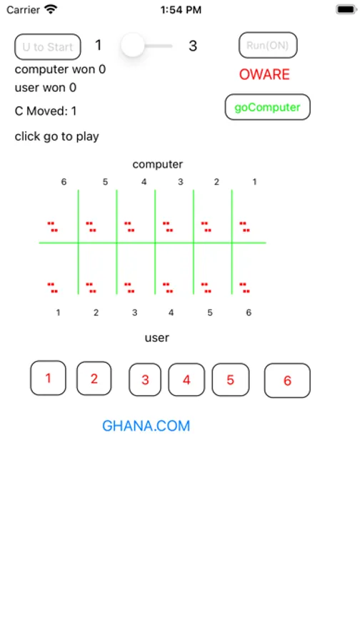 A player starts with a side of the board filled with 4 stones and chooses one hole to play. The player drops a stone consecutively counterclockwise till stones in hand finish. If the final place has one stone then the move/play ends and is turn of the other player. On the other hand if the final place has more than one the player collects the stones and continues play. A player wins when 4 reforms on the board. If the four is from last stone in hand the player wins. If not the owner of the land wins. Game ends when there are 8 stones left