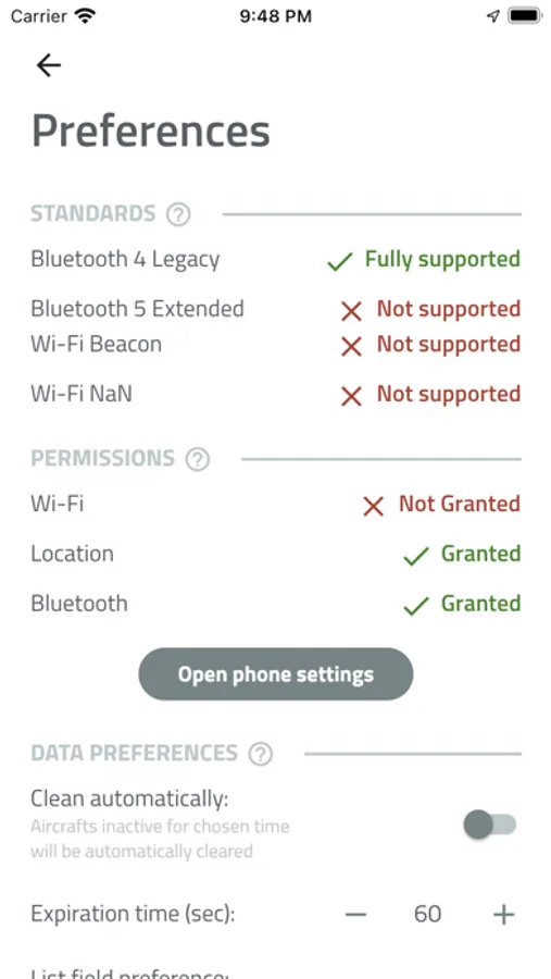 Limited access to features on some phones is caused by manufacturers’ restrictions. All iOS phones, for example, prohibit app access to Wi-Fi, so only Bluetooth data transmission will work (if and only the drone has an active Remote ID over Bluetooth). It is not a flaw of our app; we cannot fix this, and we don’t deserve negative reviews for these issues.