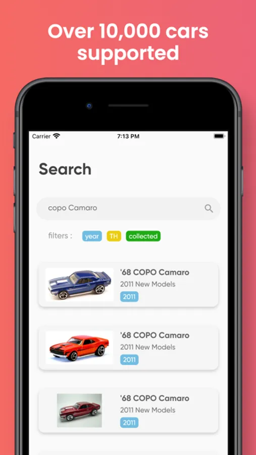 So stop organize your Hot wheels collection in documents and start using "HotWheels Collection Guide" app.