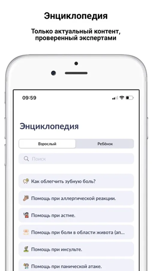 Моя первая помощь - сервис, который научит быстро и легко оказывать первую помощь. Качественный контент с фотографиями и видеороликами. Понятные инструкции по оказанию первой помощи в разных ситуациях. Доступны функции вызова скорой помощи, связи с врачом и просмотра местонахождения.