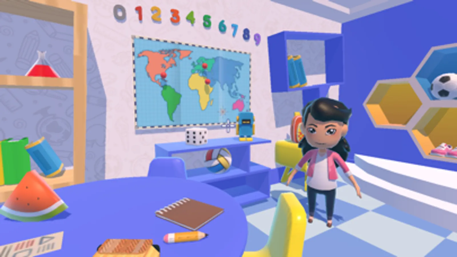 A intenção do app é proporcionar aos usuários uma aprendizagem imersiva e significativa, de modo que a compreensão sobre a geometria e o mundo real sejam melhor compreendidas. Para acessar o aplicativo e ter a experiência ideal, é necessário utilizar um óculos de realidade virtual. Considerando a facilidade de acesso, o óculos escolhido foi o Miritiboard VR.