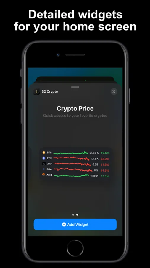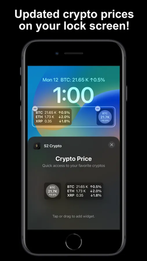 But that's not all. With S2 Crypto, you can display widgets on your iPhone's lock screen for instant access to your favorite coins. No need to unlock your phone or open the app to check prices anymore!