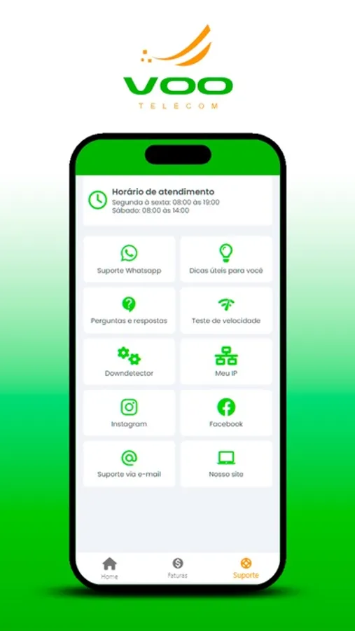 O aplicativo completo com suporte rápido na palma da mão. Ao alcance de 1 clique.