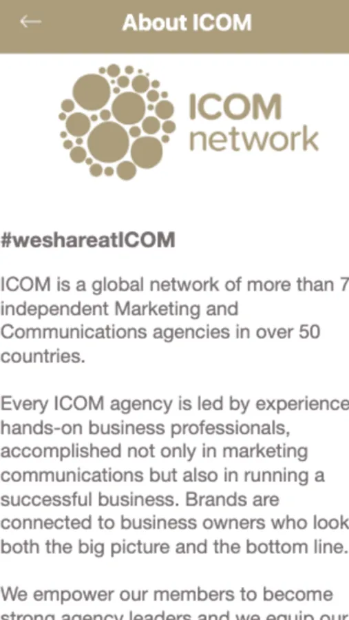 This is the official companion app for ICOM´s regional and world meetings. Download to see: