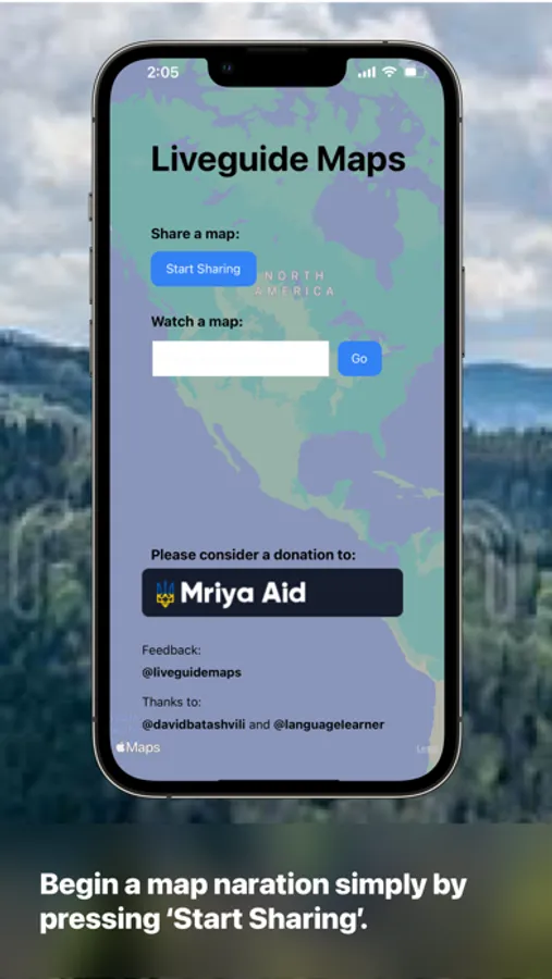 Liveguide makes explaining a map for an online audio-only audience super simple. Ideal for twitter spaces, where the audience can listen to a live audio feed, Liveguide lets the speaker or host steer an interactive map to a relevant section and this map area is automatically displayed on the listener's device. Inspired by the effort to teach the public about Russia's invasion of Ukraine and Ukraine's valiant effort to restore its full territory and sovereignty. We are also happy to assist those advocating and educating for the liberation of the Iranian people as they seek a government that has respect for human rights, personal liberty and the full consent of the Iranian people. If you like the app please consider a donation to one of the many charities supporting the people of Ukraine including https://www.mriyaaid.org. We are still looking for an Iranian fund to support their efforts.