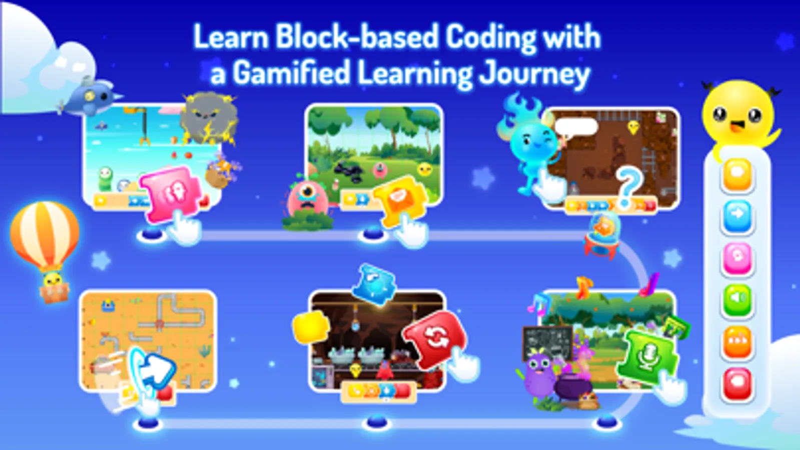 ■ Meet new friends on Coding Island and use code blocks to communicate with them.