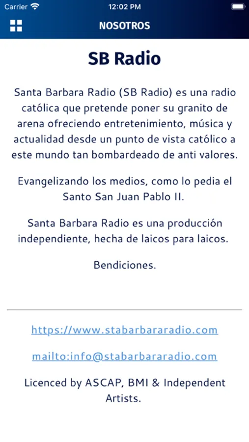 Finalmente una radio con música, actualidad y entretenimiento desde un punto de vista católico. Evangelizando los medios. Hecha de laicos para laicos. Santa Bárbara Radio busca colaborar con un granito de arena evangelizando a través de las redes sociales y el internet a este mundo tan bombardeado de anti valores, siguiendo la peticion del papa San Juan Pablo II "Evangelizar los medios".