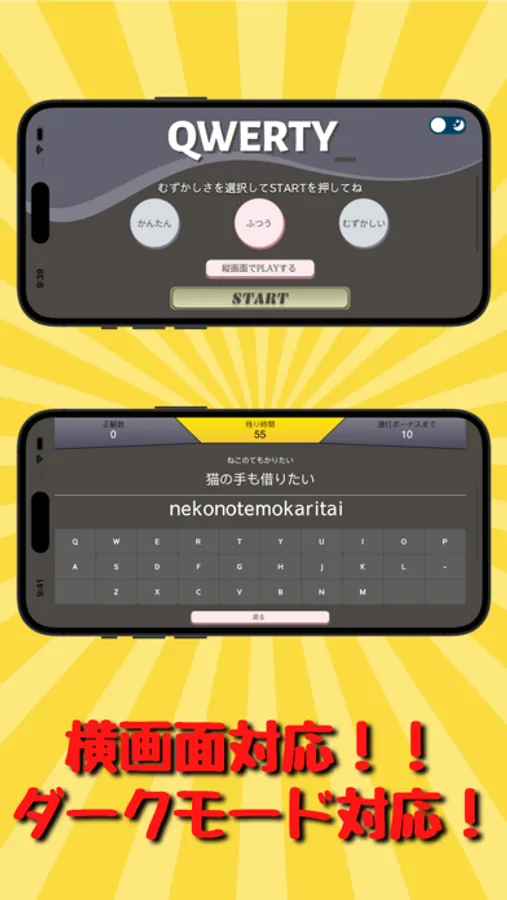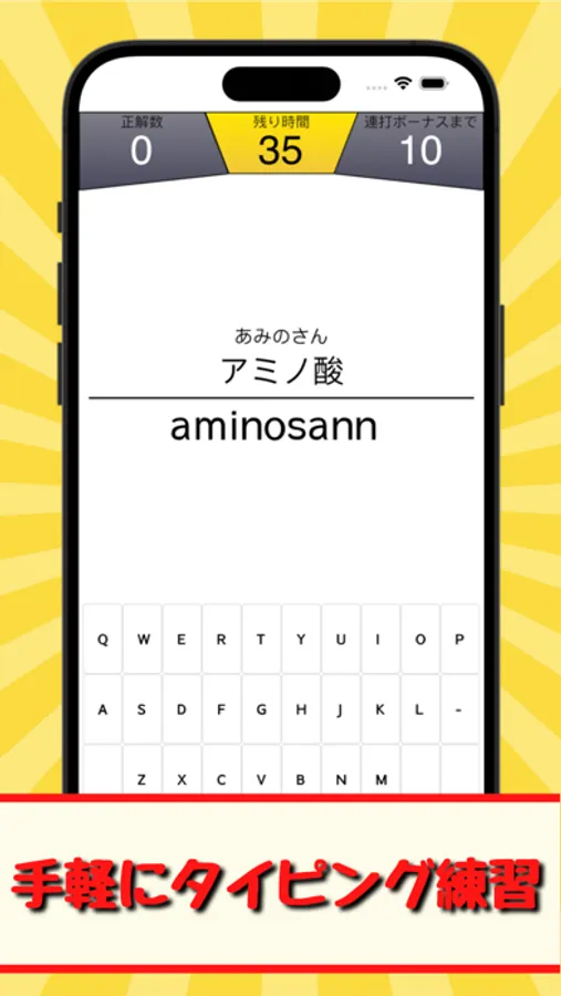 パソコンのキーボード配列【QWERTY】を使ったタイピングの練習ができるアプリです。